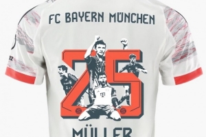 体育资讯5月5日讯 拜仁发布特别版球衣,纪念穆勒25年拜仁生涯。