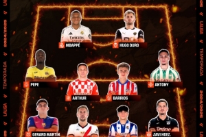 体育资讯5月7日讯 西甲官方列出了第34轮比赛最佳阵容,姆巴佩、安东尼、杰拉德-马丁在列。