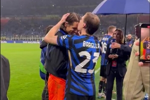 本场比赛,国米门将索默屡献神扑,赛后被评为全场最佳。球员在接受采访时,队友巴雷拉抱着他在额头亲了两口。