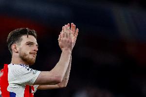 摩根的妻子将阿森纳中场德克兰-赖斯说成了蒂姆-赖斯,后者是英国音乐剧作词家。