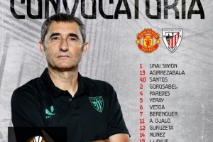 体育资讯5月7日讯 北京时间5月9日凌晨,毕尔巴鄂将在欧联杯半决赛次回合比赛中客场对阵曼联,首回合毕尔巴鄂0-3落败,毕尔巴鄂公布了此役的球员名单,威廉姆斯兄弟、桑塞特缺席,其中伊纳基-威廉姆斯右腿腘绳肌腱受伤。