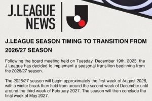 昨日,J联赛组织方和各俱乐部举行了会议,并分享了改革计划。在会议中,J联赛组织方提出了一个赛程改革方案,即从2026年开始,J联赛改为跨年赛制。