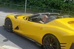 哈兰德训练结束后,驾驶这辆新款法拉利敞篷812 Superfast离去,车如其名,这辆法拉利从0-60英里只需3秒。
