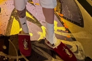 这位阿根廷边锋当晚身着连帽衫配短裤,却搭配了一双印有格兰芬多学院标志的绒毛拖鞋。眼尖的网友发现后瞬间炸锅:“加纳乔这操作太魔幻了”、“他居然穿着格兰芬多拖鞋逛街笑死”,“忘换拖鞋就出门可太真实了”,甚至有球迷直呼:“因为这双拖鞋更喜欢他了!”