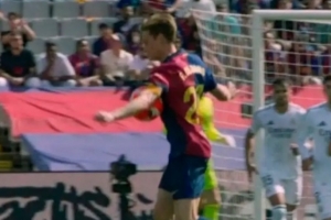 在比赛的第32分钟,亚马尔的进球帮助巴萨将比分扳成2-2。 尽管起初没有人注意到,但慢镜头回放显示,在这次进攻开始时,德容可能有手球嫌疑。