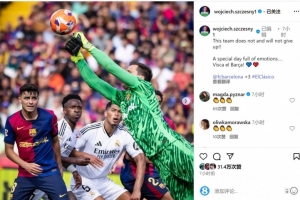 巴萨门将什琴斯尼社媒晒出比赛中扑救的照片,配文:“这支球队没有放弃,也不会放弃!”