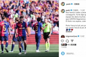 佩德里在社交媒体上写道:“我们重新站起来并做到这一切,我早就说过,这支球队会带给你们很多快乐,我们团结在一起会走得很远!冠军在等着我们,巴萨球迷!”