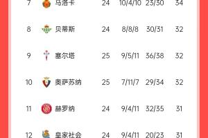 巴萨以54分排名榜首,领先马竞1分,领先未赛的皇马3分。皇马今晚23:15分将主场迎战赫罗纳。