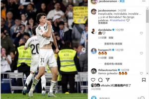 拉蒙在社交媒体上写道:“难以描述,难以忘怀,难以置信……而且是在伯纳乌!无以言表,Hala Madrid🤍”
