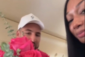 克莱机场接女友马冬梅迟到 送上鲜花并道歉:宝贝对不起 我没借口