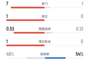 预期进球0.53-0.13