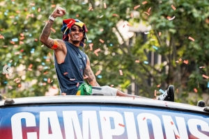 体育资讯5月17日讯 近日,在巴萨提前两轮获得西甲联赛冠军后,球队和球迷举行了盛大的庆祝活动,拉菲尼亚在社媒分享了这些精彩瞬间。