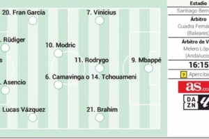 体育资讯2月23日讯 北京时间今晚11点15分,皇家马德里将在西甲第25轮主场迎战赫罗纳,《阿斯报》预测了皇马的首发阵容。