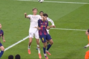 不满进球!巴萨球员强烈抗议贝林进球前,赫伊森肘击库巴西脸部