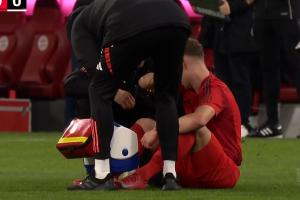 体育资讯02月24日讯 拜仁vs法兰克福第43分钟,基米希坐在地上无法坚持!格雷茨卡登场!