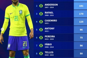 体育资讯6月2日讯 库尼亚正式加盟曼联,这名巴西射手在球队前景令人期待,德转也盘点了曼联队史出场次数最多的巴西球员榜单,具体如下: