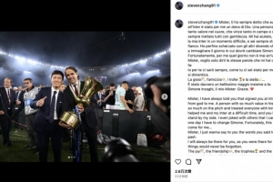 体育资讯6月4日讯 国米官方宣布,主帅小因扎吉离队。前国米主席张康阳通过社交媒体发文深情告别蓝黑主帅。