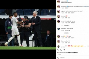 赛后安切洛蒂也在个人社媒晒出与阿拉巴的合照,配文写道:“欢迎回来,冠军!”