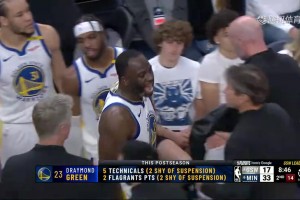 队记:勇士声称不想让追梦打五但近5场有4场如此 他们排很多怪阵