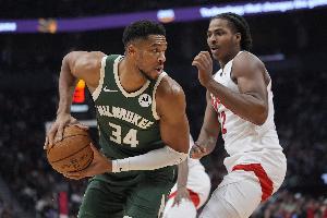 本赛季字母哥场均砍下32.3分12.6板6.3助 投篮命中率高达67.7%