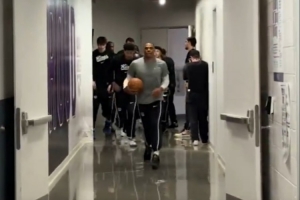 领袖气质尽显无疑!威少赛前领着队友们从球员通道进场