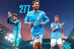 队史第三!B席第277次为曼城在英超出场,仅次于席尔瓦、德布劳内