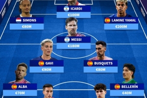 德转列巴萨青训现役球员阵容:梅西、亚马尔在列,总价9.9亿欧