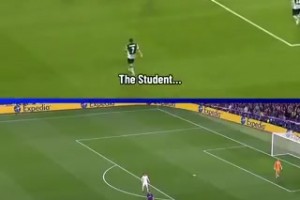 明特单刀机会被多古破坏,裁判向多古出示黄牌