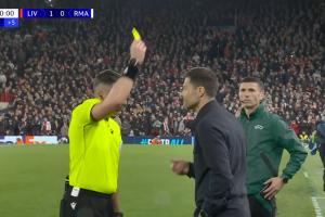完场哨响前,阿隆索场边因抱怨判罚被出示黄牌