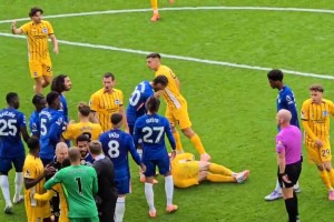 乱作一团!半场结束后克雷桑与杨梓豪爆发冲突,各吃一张黄牌