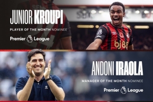 表现优异!伯恩茅斯入围英超10月最佳教练、最佳球员、最佳进球